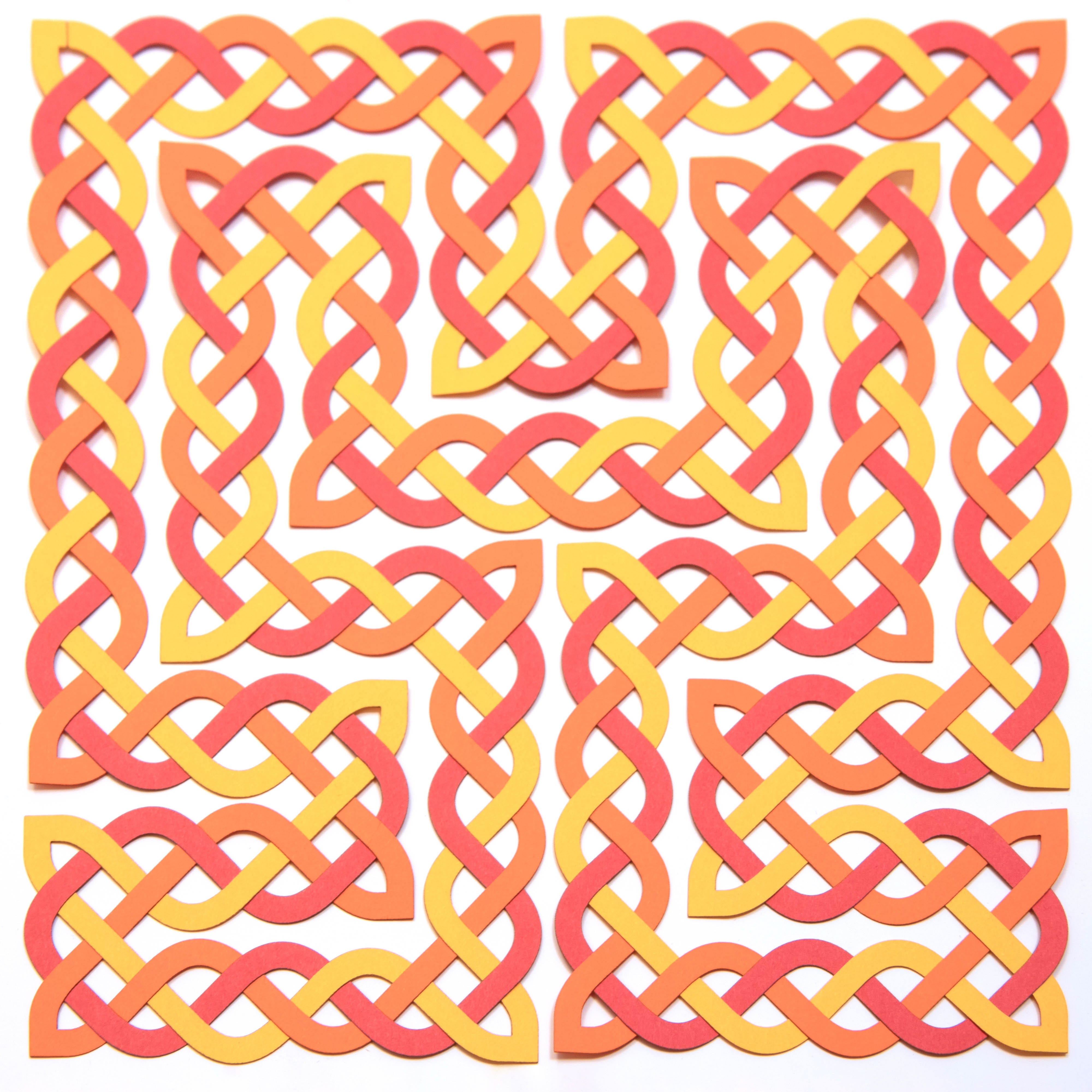 The overall patterns of both designs are different iterations of the Hilbert curve, a continuous fractal space-filling curve named after the German mathematician David Hilbert in 1891. This seemed like a good fit, since several Celtic designs are also naturally space-filling.