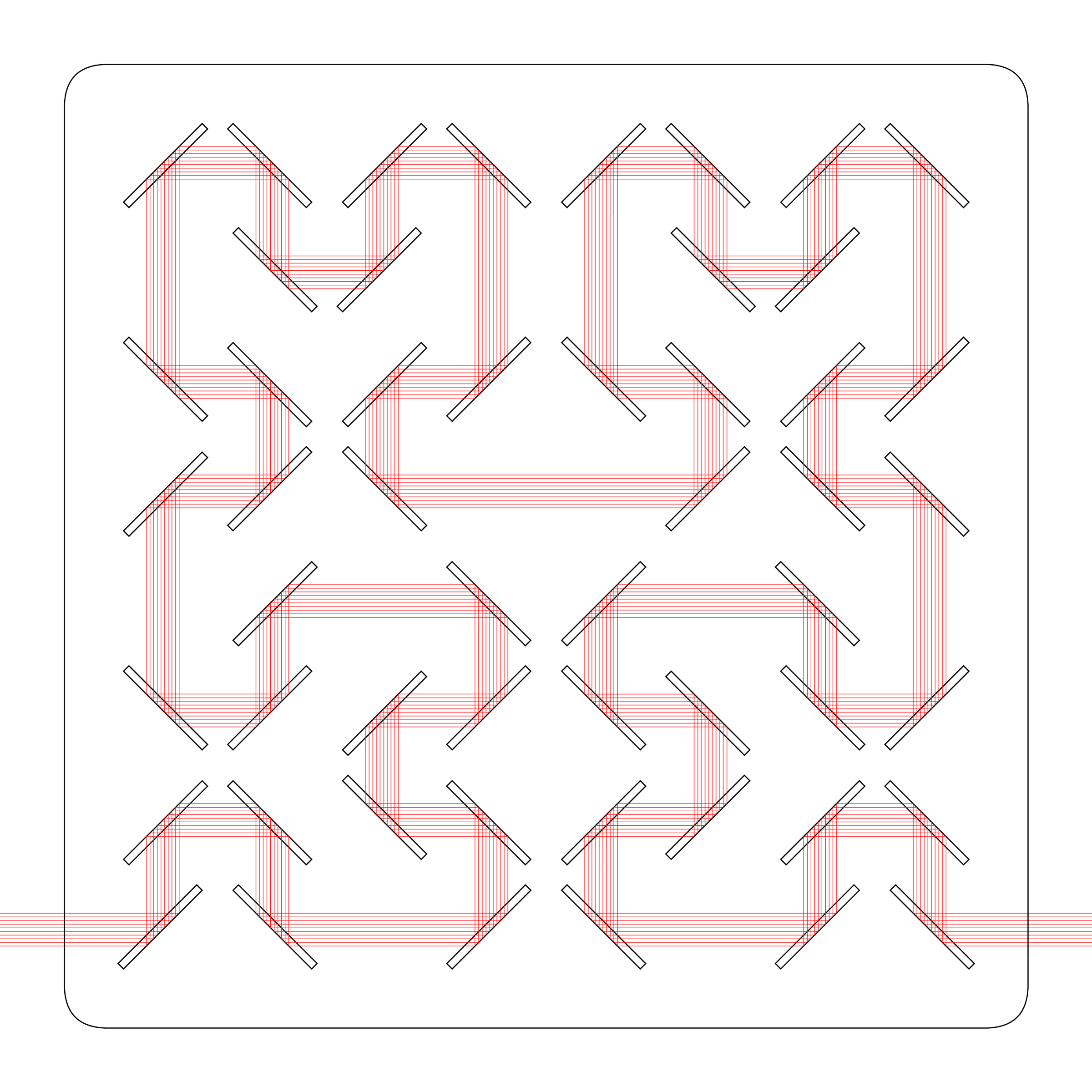 The labyrinth is made of different parts: The base is made of two pieces of wood glued together, where the top layer has slits precisely cut to hold the 52 mirrors in such a way that the back sides of the mirrors were on the appropriate diagonals.