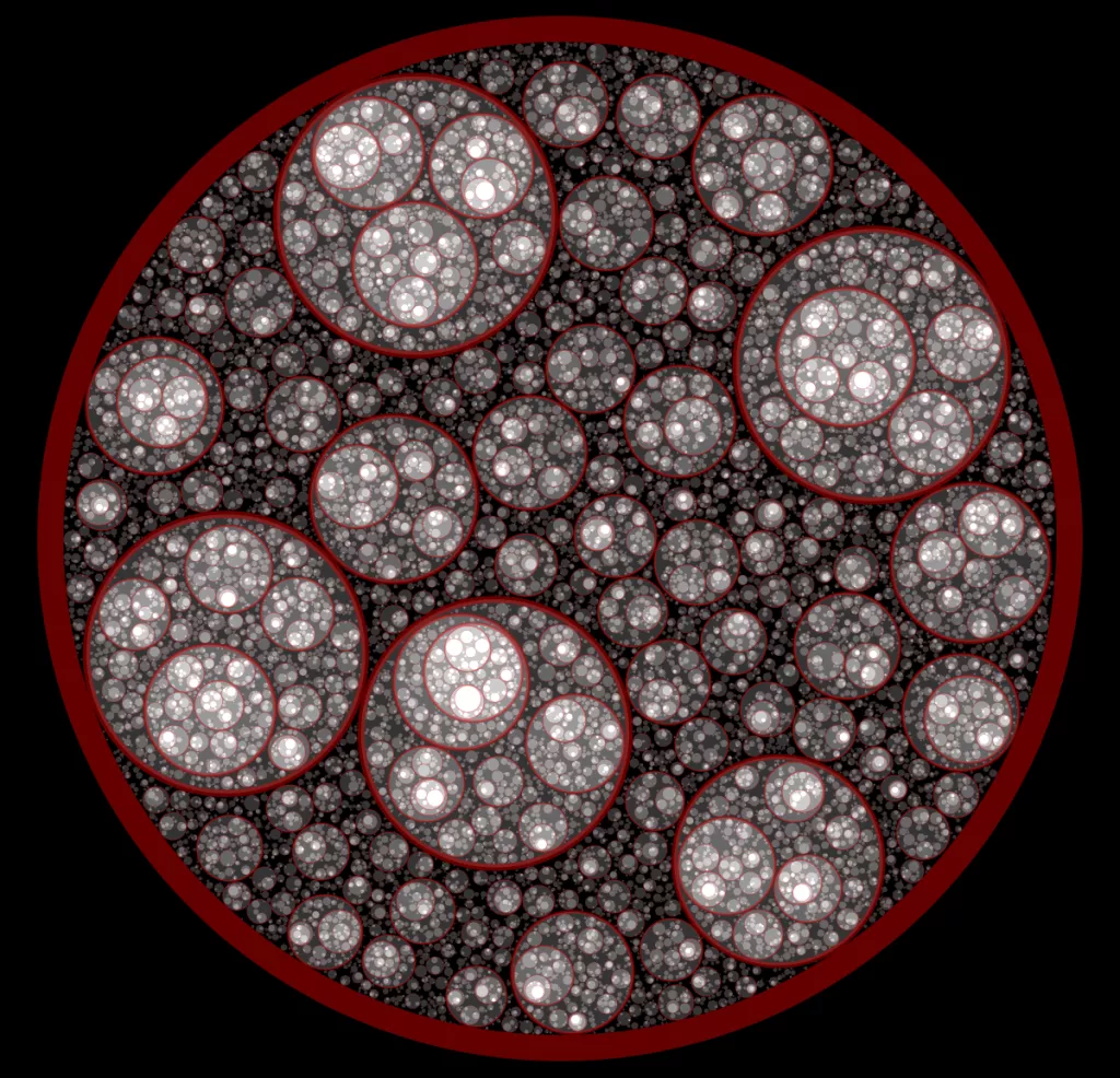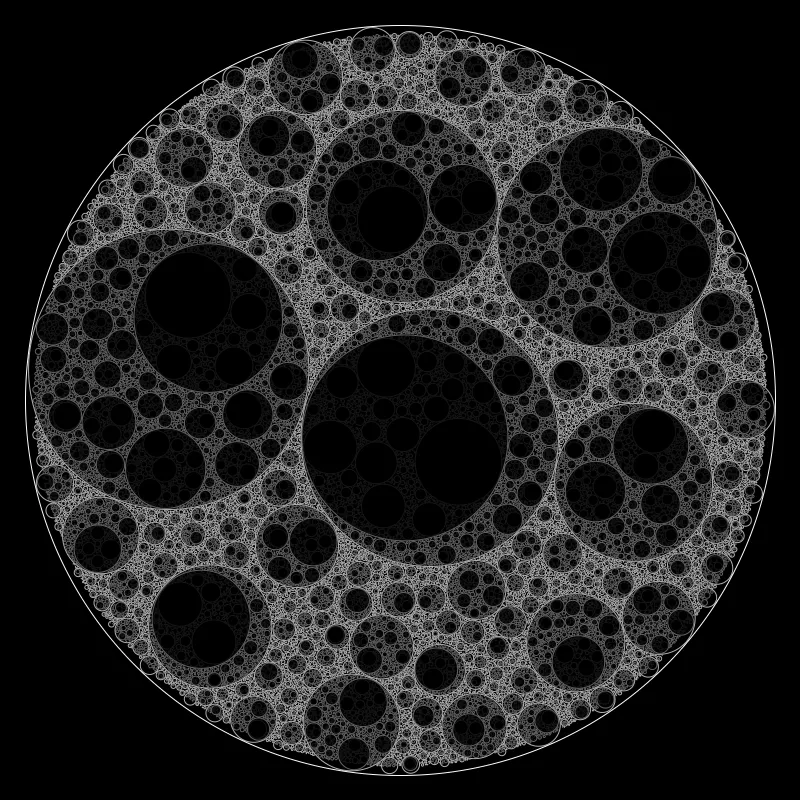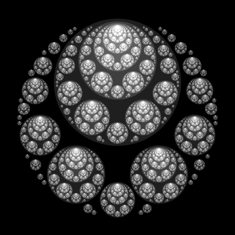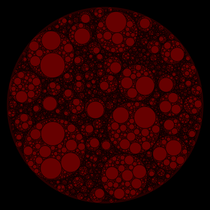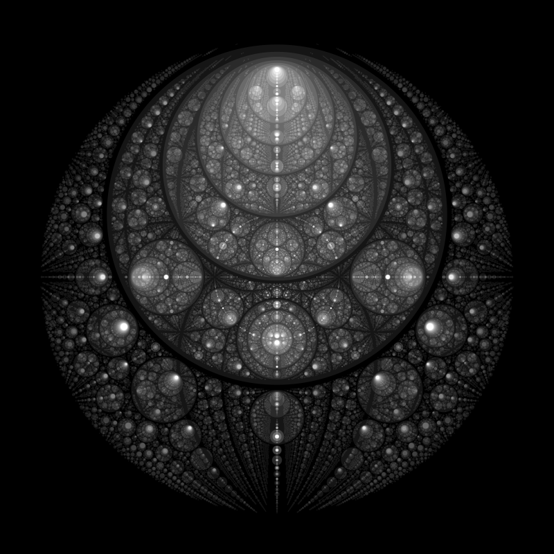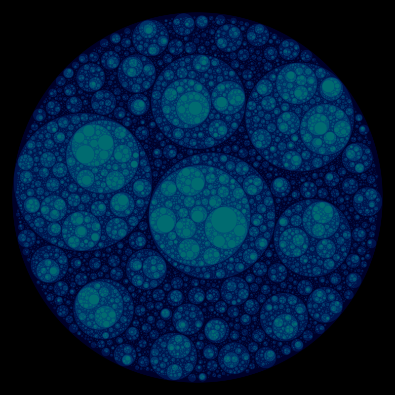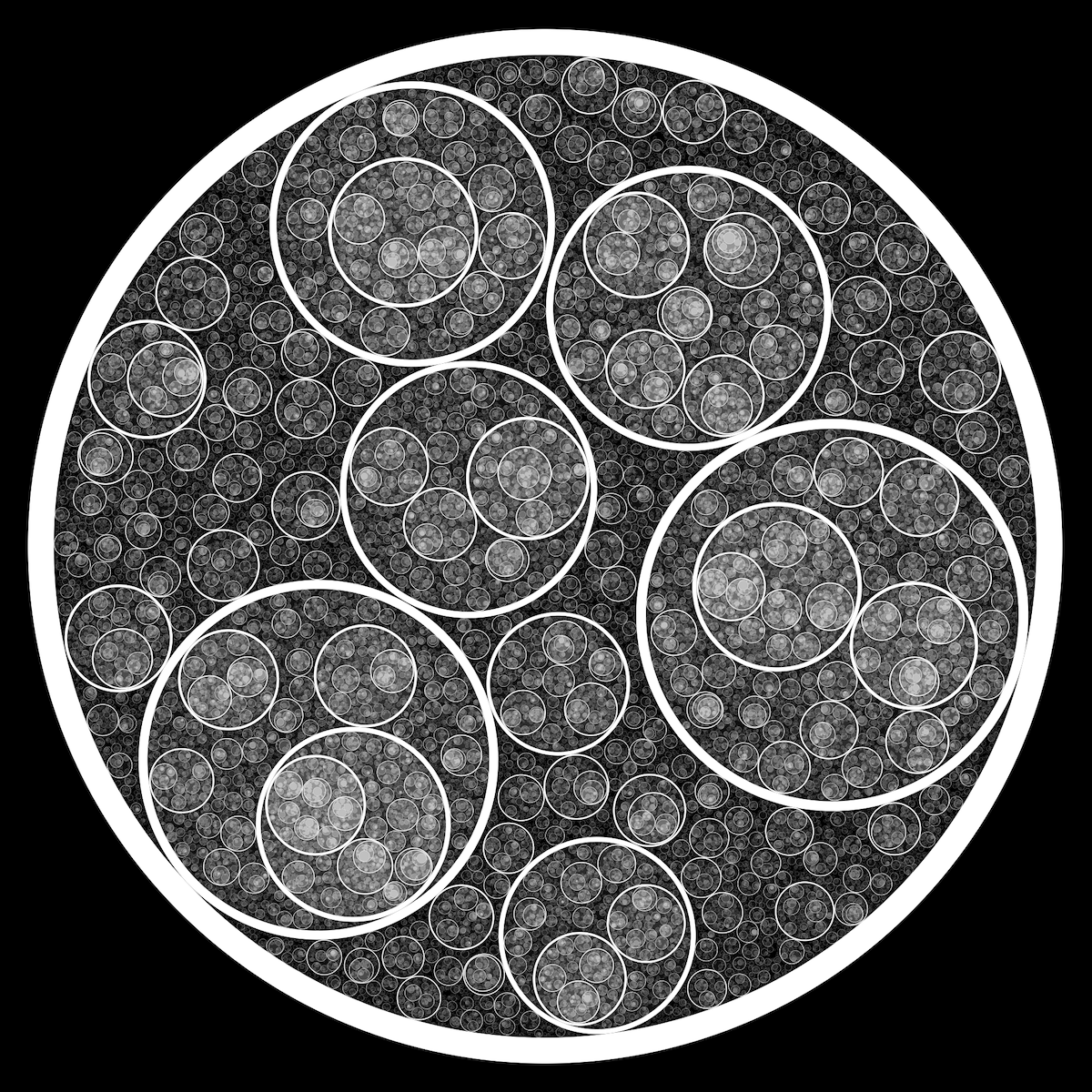 These following four images emerge from picking points at random and constraining the depth – the number of enclosing circles – to certain numbers.