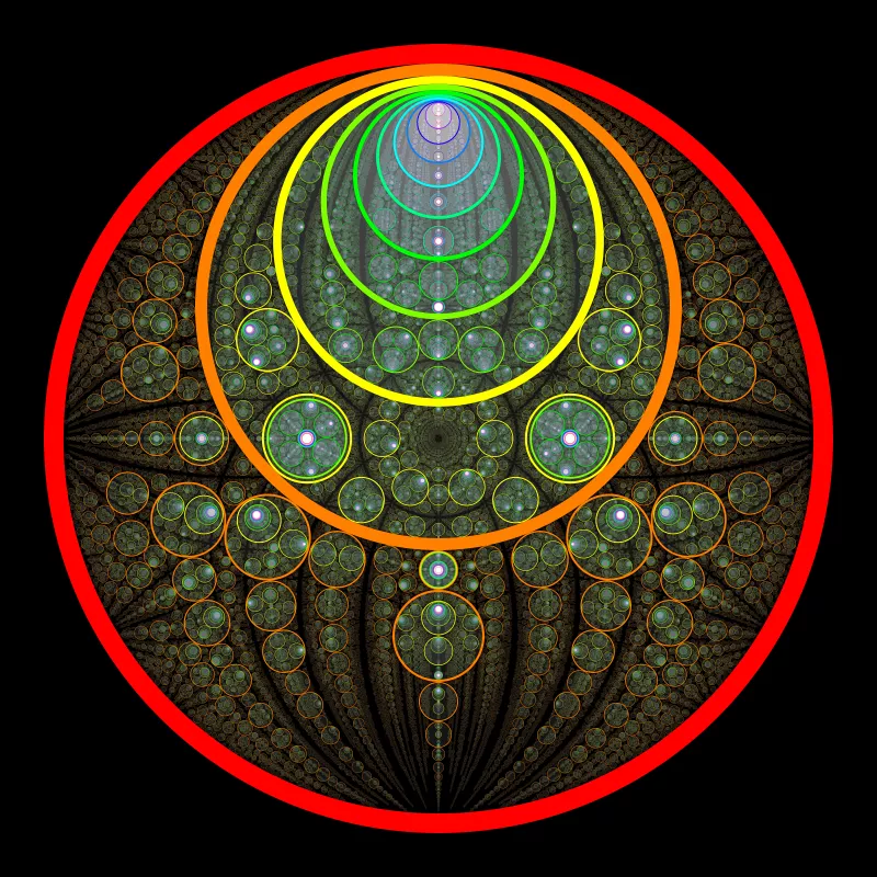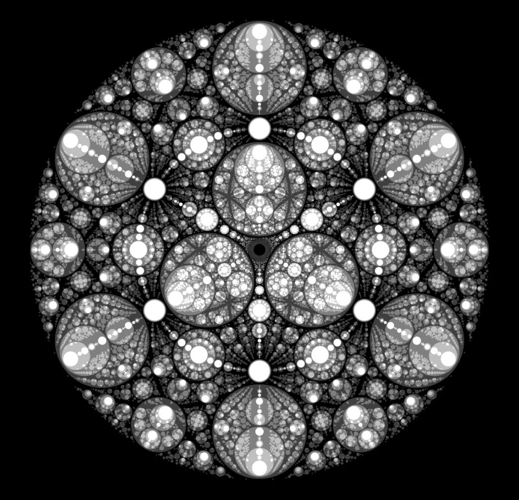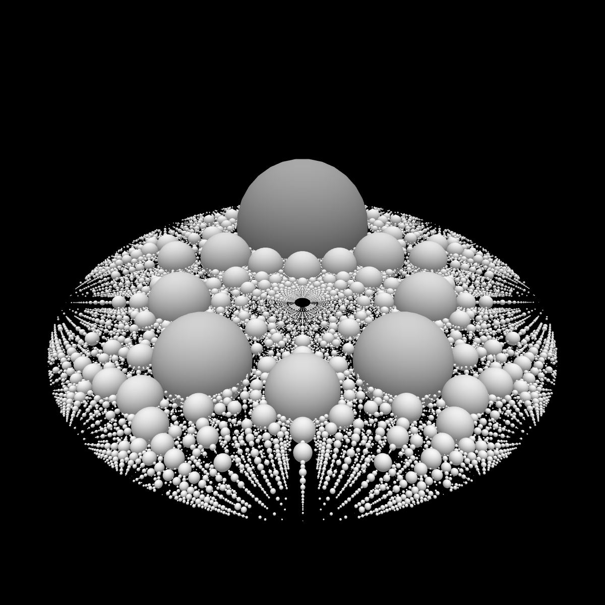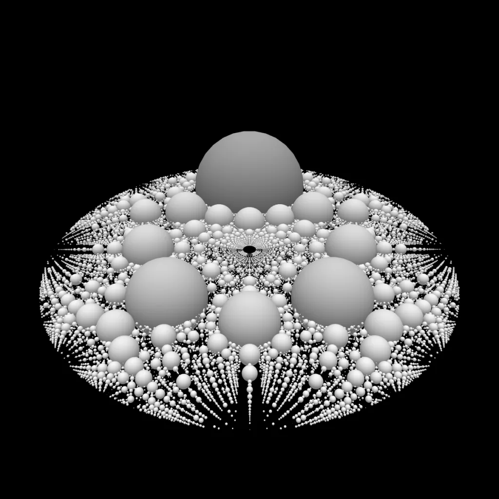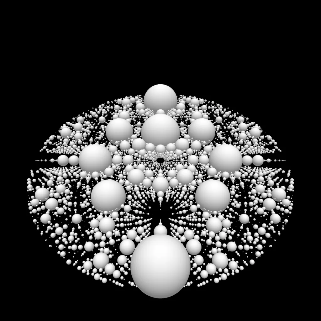 These following four images emerge from picking points at random and constraining the depth – the number of enclosing circles – to certain numbers.