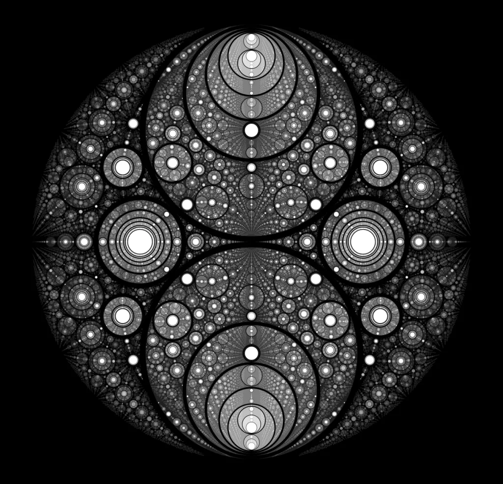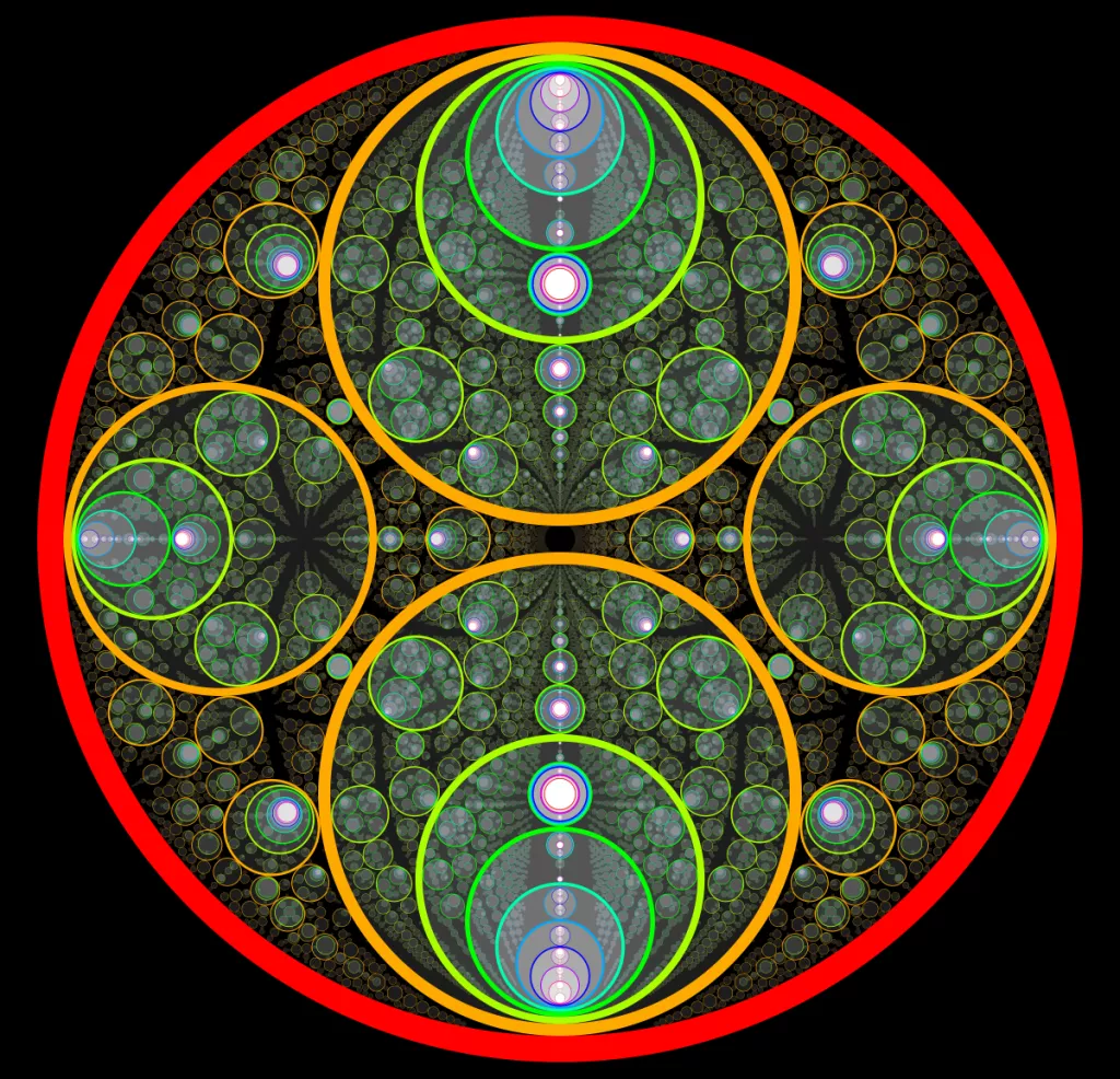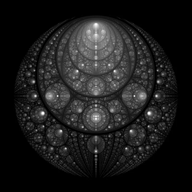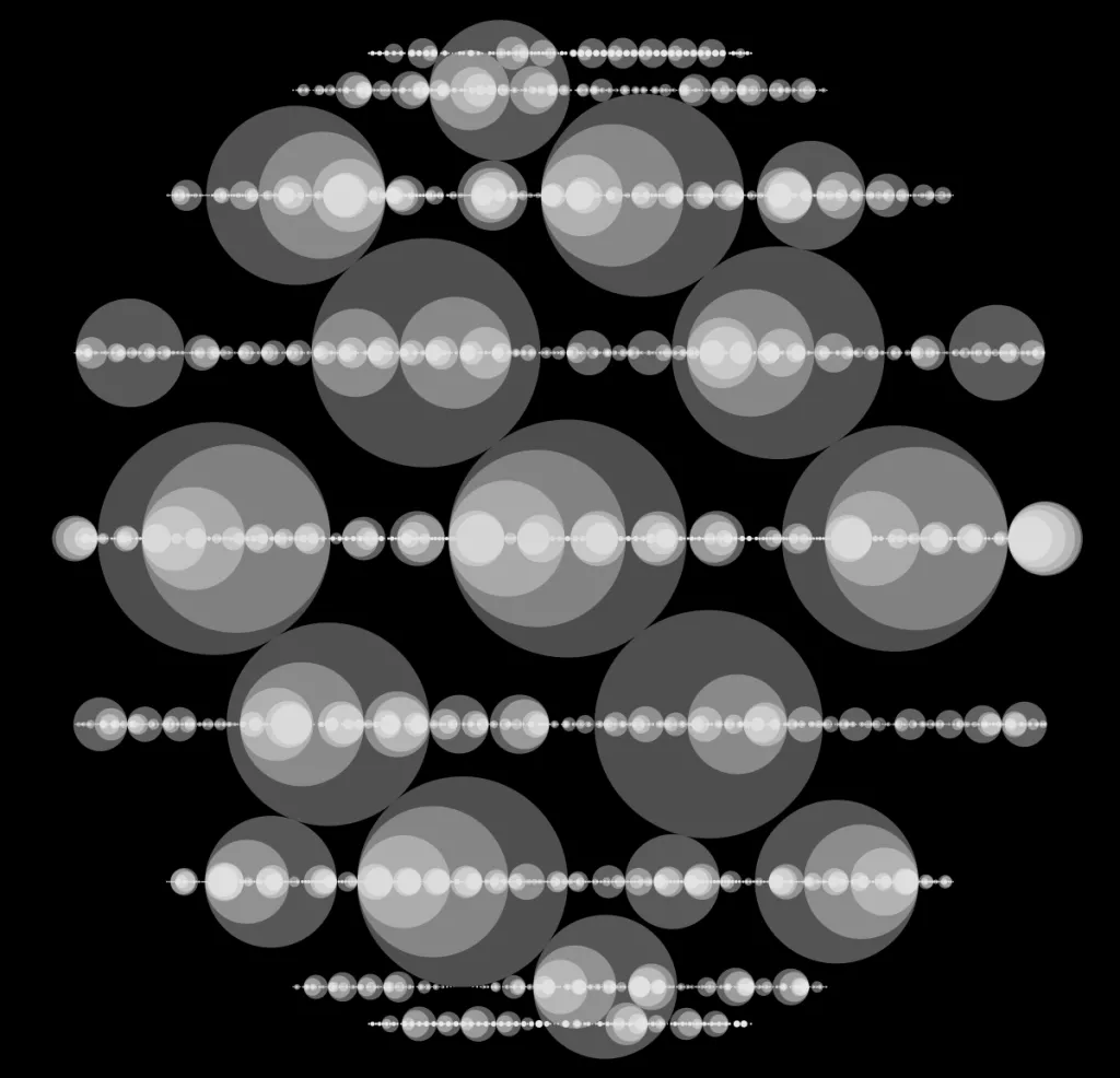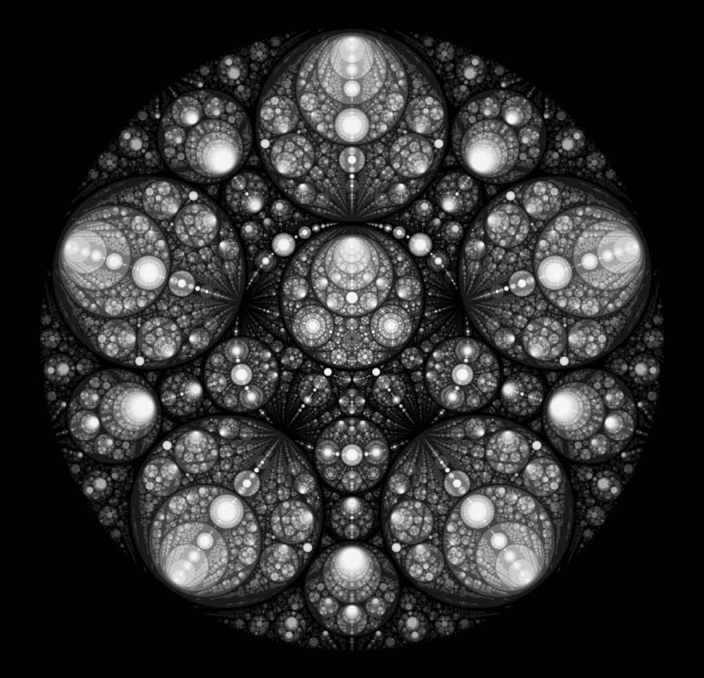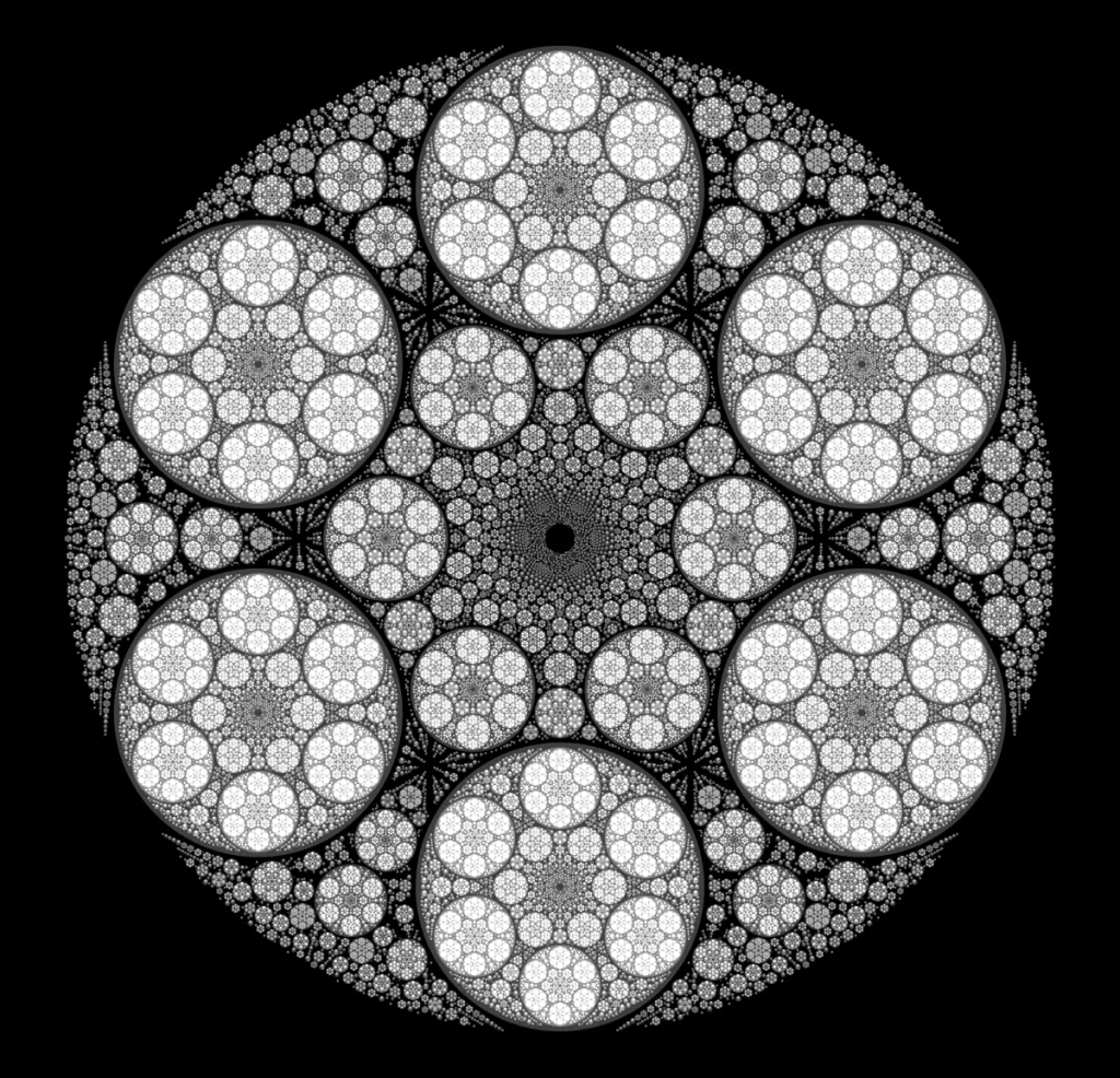 These following four images emerge from picking points at random and constraining the depth – the number of enclosing circles – to certain numbers.