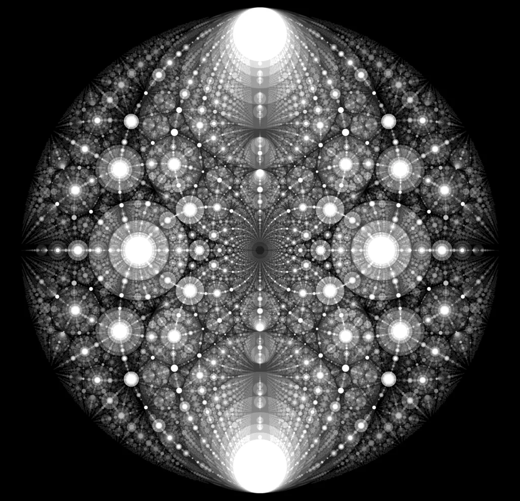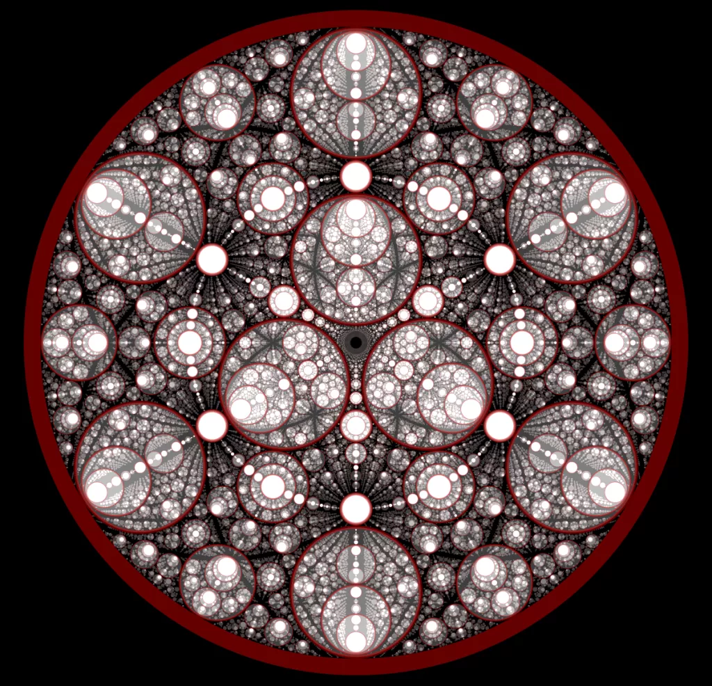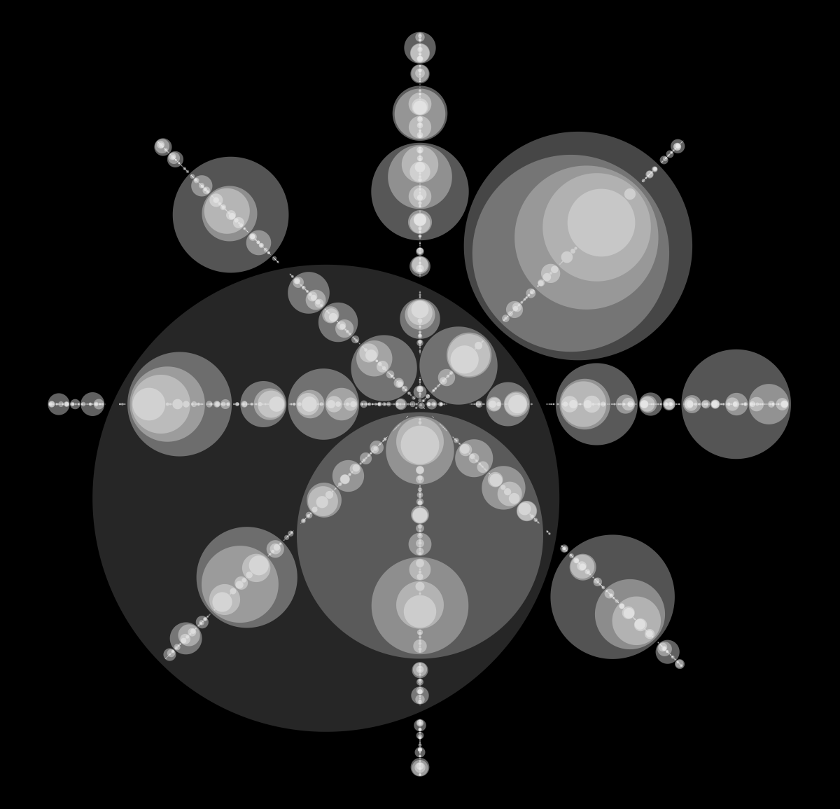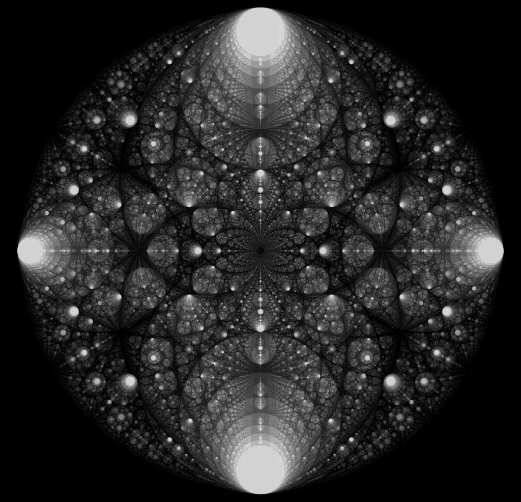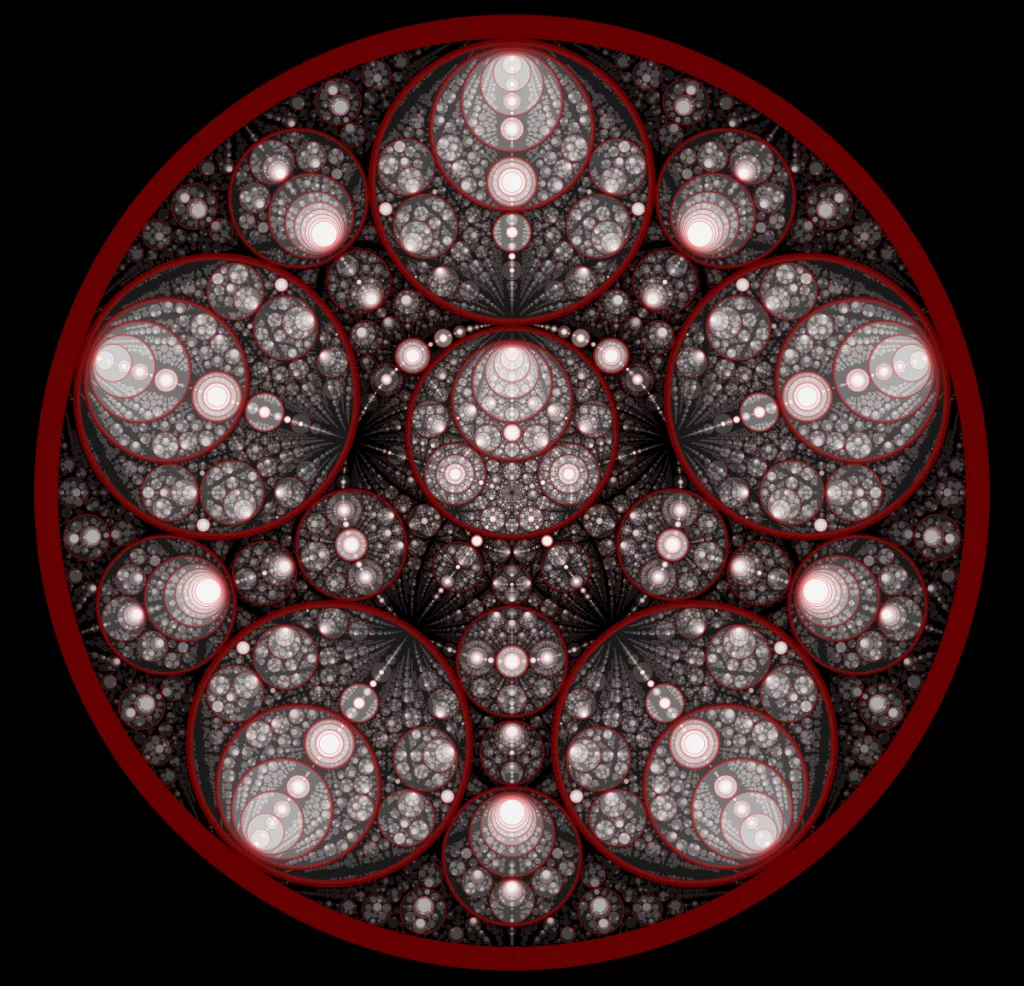 These following four images emerge from picking points at random and constraining the depth – the number of enclosing circles – to certain numbers.