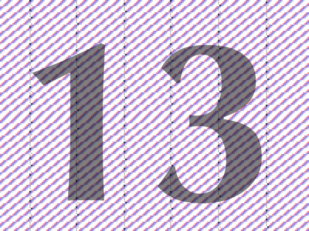 Her er alle dagene fra 2000 til 2016 markert med hvert sitt kvadrat. Hver linje er ett år, fredagene er røde, og lørdagene og søndagene er blå. Hver gang det er den trettende i en måned, har jeg satt en liten prikk. De svarte rammene markerer fredag den trettende.