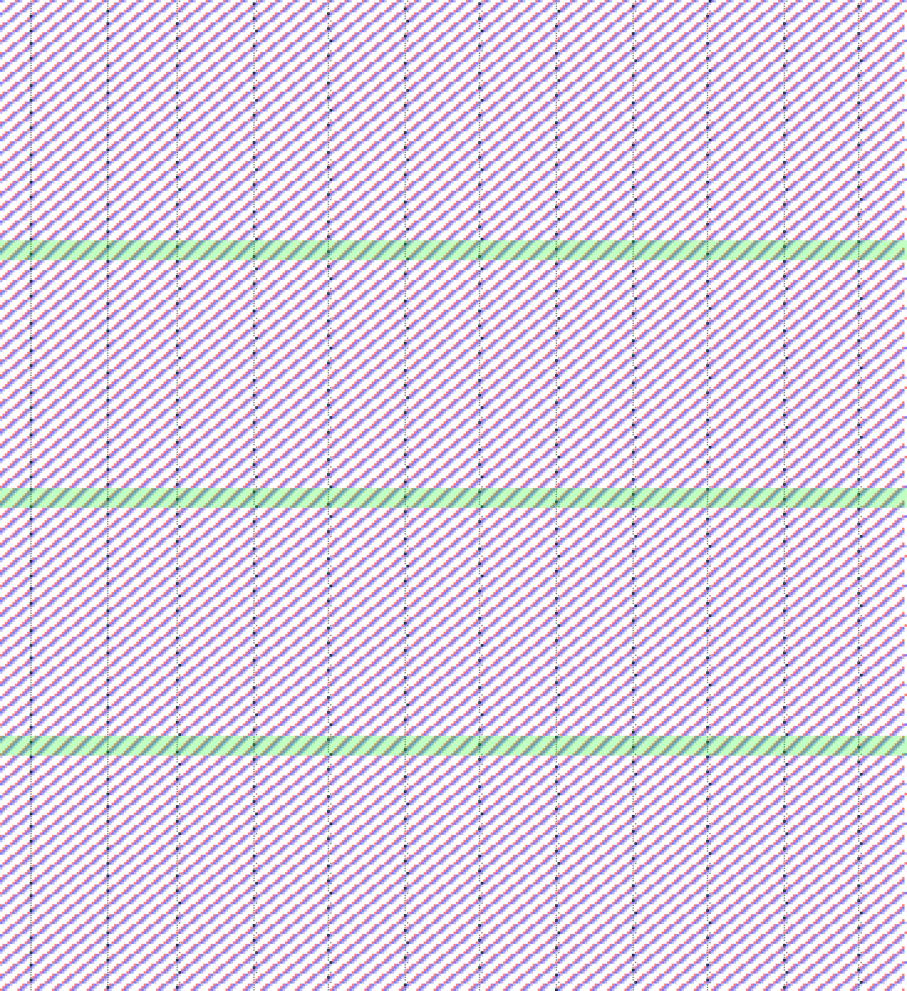 Det viser seg at fordelingen av ukedager gjentar seg helt nøyaktig etter akkurat fire hundre år. Hele bildet, fra 2000 til 2399, ser ut på følgende måte. Den 1. januar 2000 var en lørdag (det er den blå prikken øverst til venstre), og den 1. januar 2400 er også en lørdag. Fordi fordelingen av ukedager gjentar seg etter fire hundre år, vil bildet som begynner med år 2400 vært helt likt.