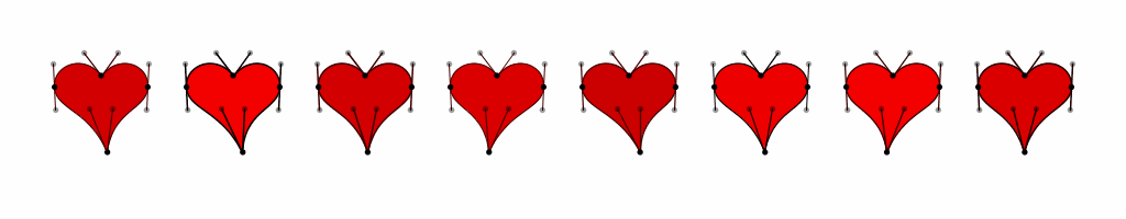 For kort siden, på valetindagen, 14. februar, tvitret jeg om hjerter og kjærlighetsbrev. Konteksten var helt enkelt at jeg ikke visste hvordan jeg skulle tegne et hjerte, og derfor bestemte jeg meg for å lage et program som kunne tegne forskjellige hjerter for meg. Noen av disse hjertene endte opp slik: