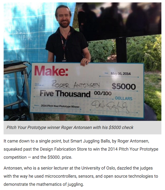http://makezine.com/2014/05/16/smart-juggling-balls-wins-pitch-for-prototypes-competition/