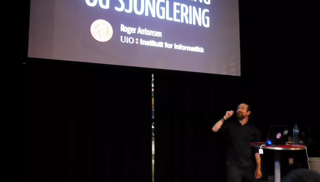 Foredrag om vitenskap, kunst, sensorer, matematikk, programmering, sjonglering, lys og lyd.