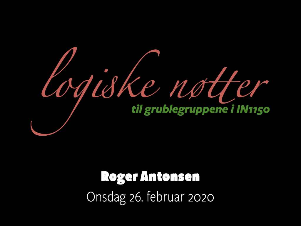 Logiske nøtter til grublegruppene i IN1150 – Logiske metoder!